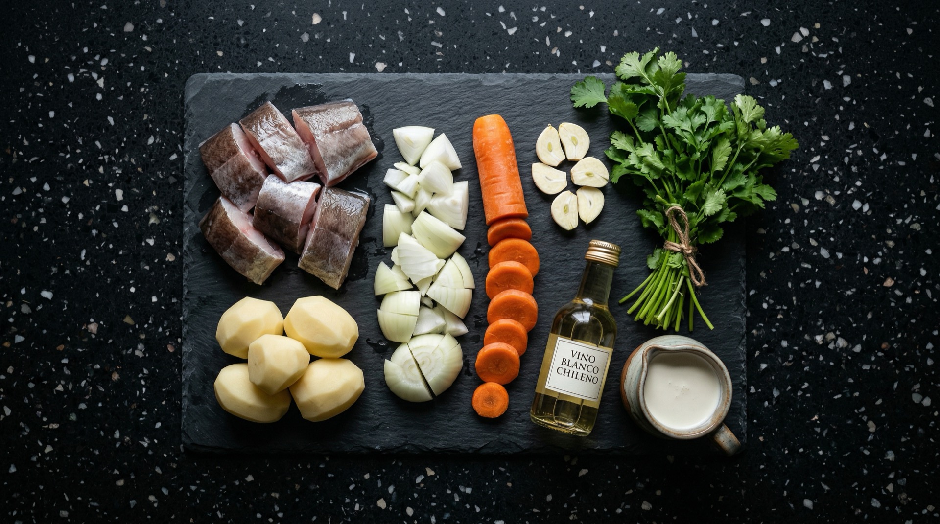Los ingredientes para preparar caldillo de congrio tradicional chileno