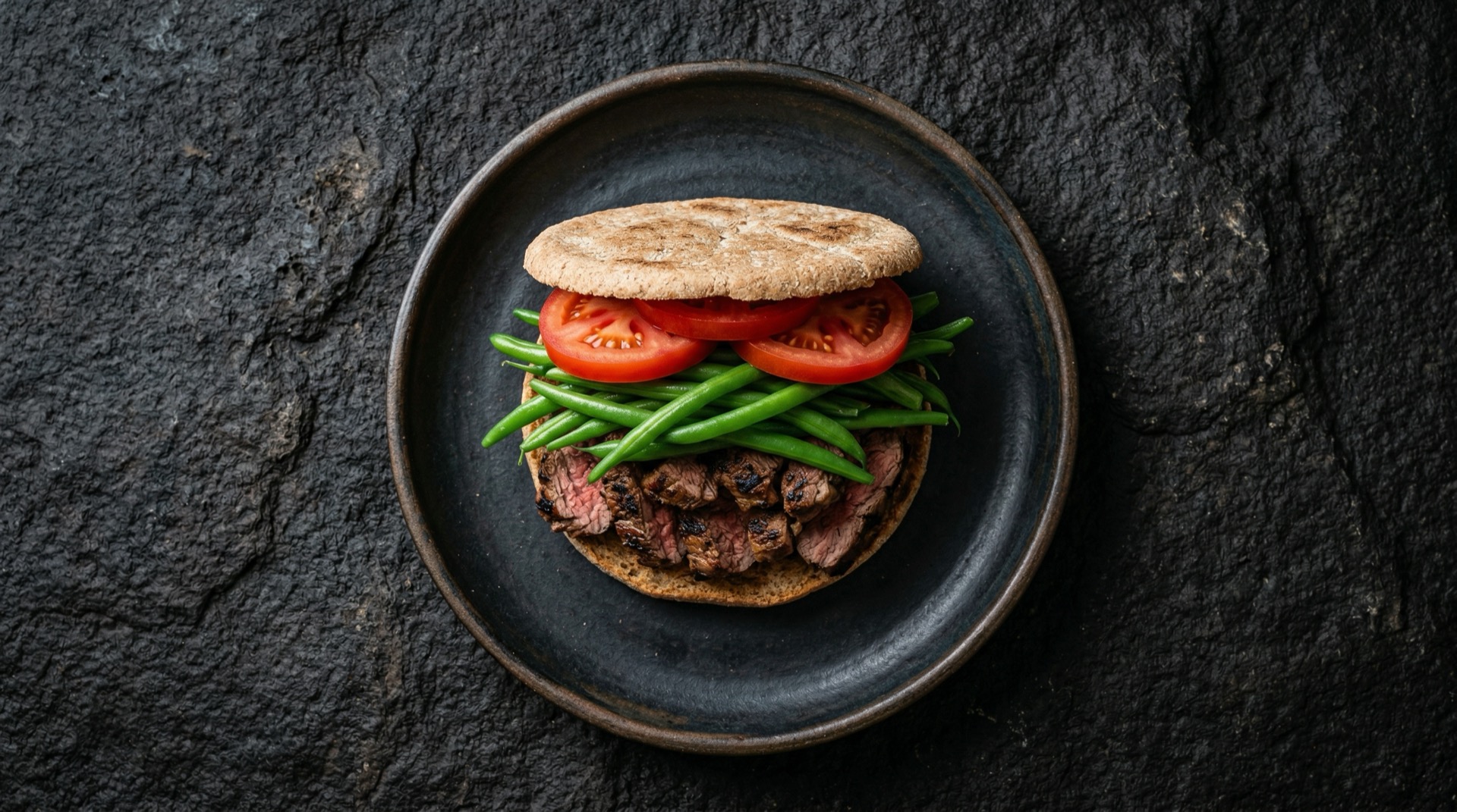 Nota sobre las porciones: el tamaño del bistec y la cantidad de porotos verdes varian entre locales. Para obtener un conteo exacto, toma una foto con ComiAI y obtiene los macros al instante.