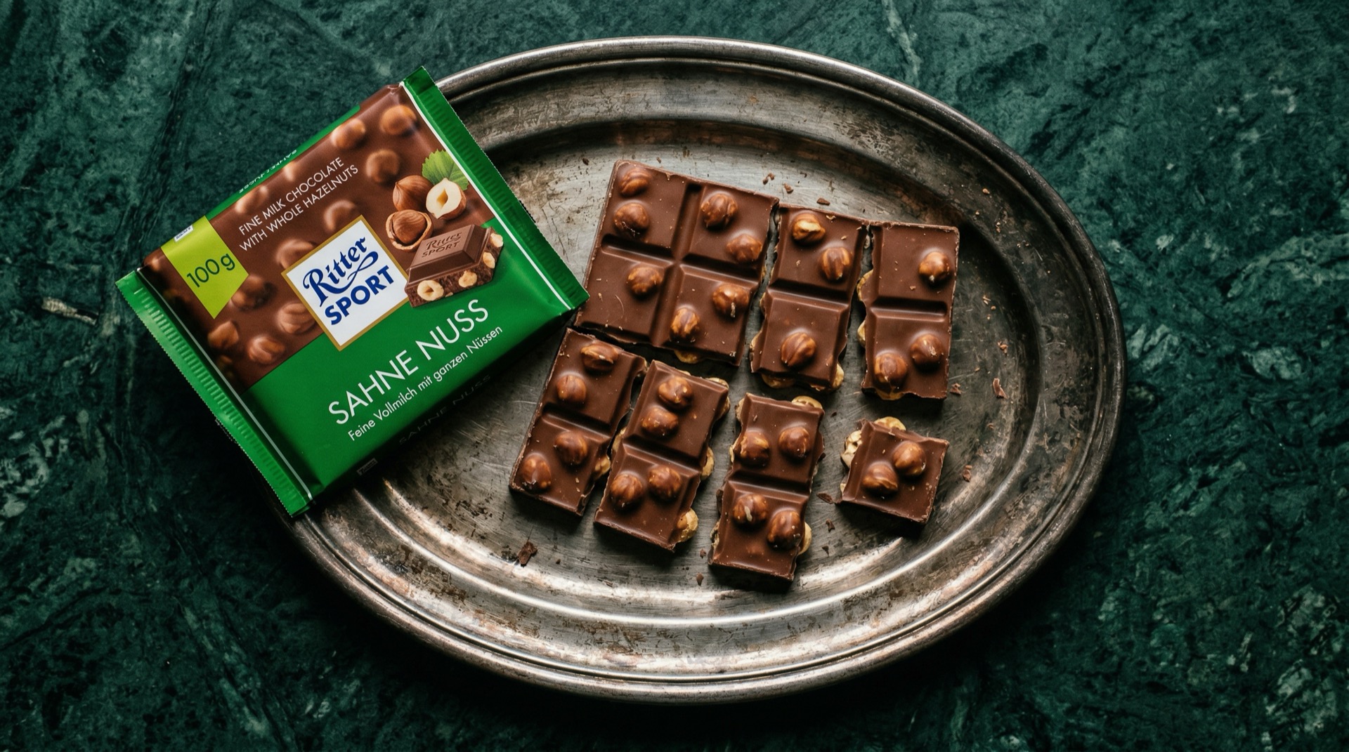 El Sahne-Nuss tiene variantes estacionales y ediciones limitadas, pero el clasico con leche y avellanas sigue siendo el 90% de las ventas. La version dark (chocolate amargo) tiene un poco menos de azucar pero practicamente las mismas calorias.