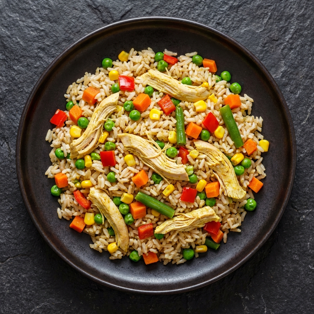 Arroz con pollo “fit”: ~380 calorias