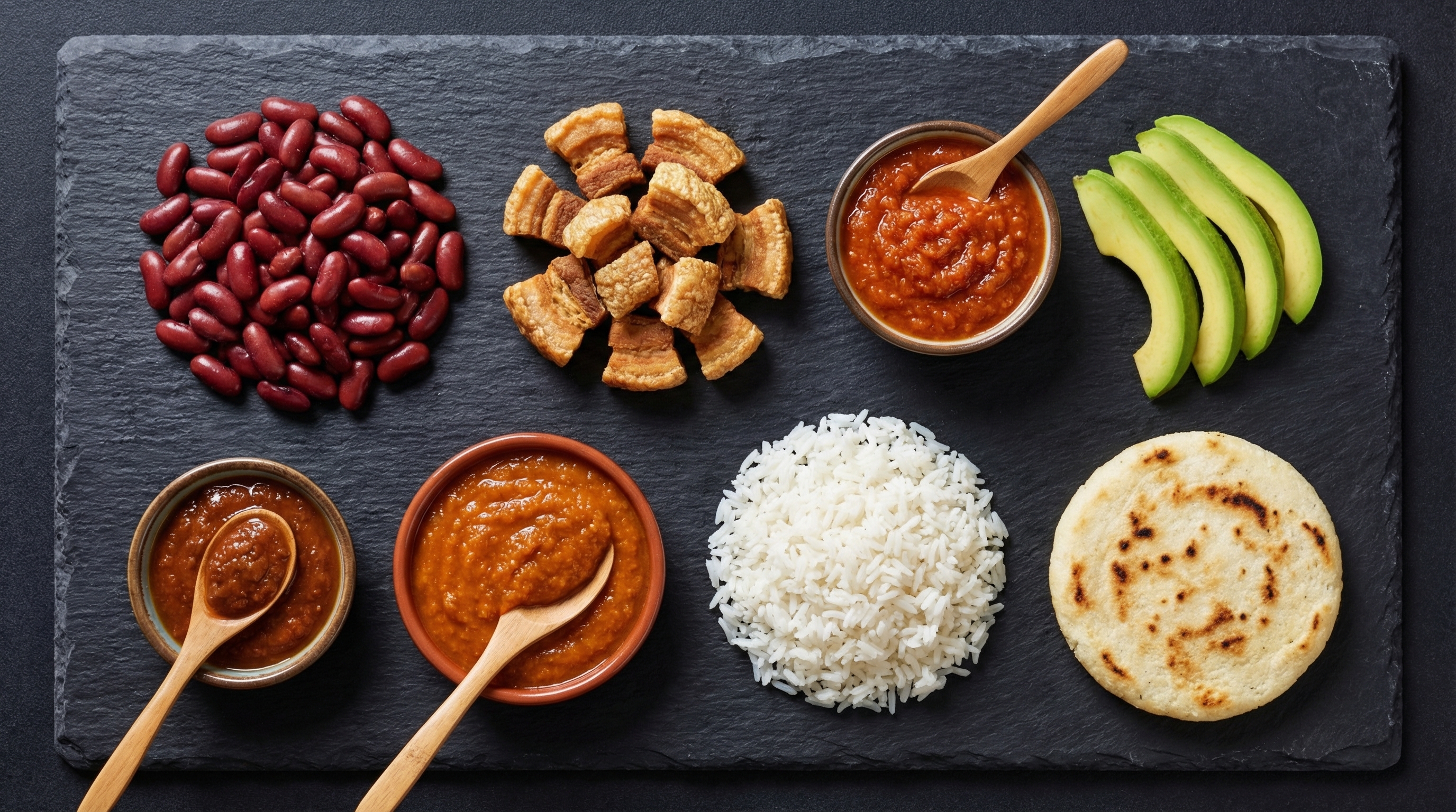 | Almuerzo corriente completo | 950 kcal | 38 g | Frijoles, arroz, chicharron, platano maduro, aguacate |