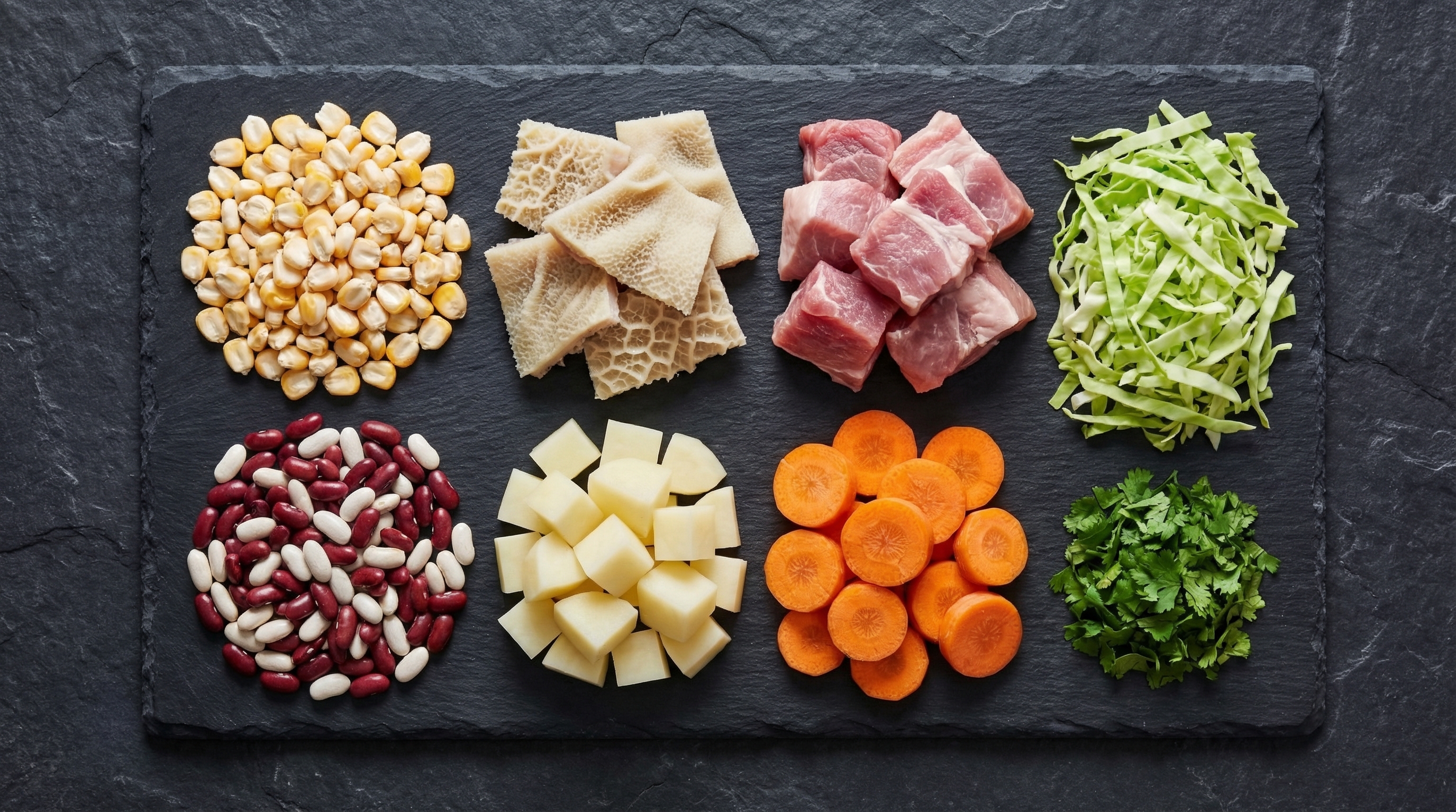 Lo que hace unico al mute es la variedad de texturas y sabores: la cremosidad del garbanzo, la firmeza del maiz pelado, la suavidad del frijol, la carne de cerdo tierna y todas las verduras aportando color y nutrientes. Es un plato que alimenta familias enteras y que se come como almuerzo principal.