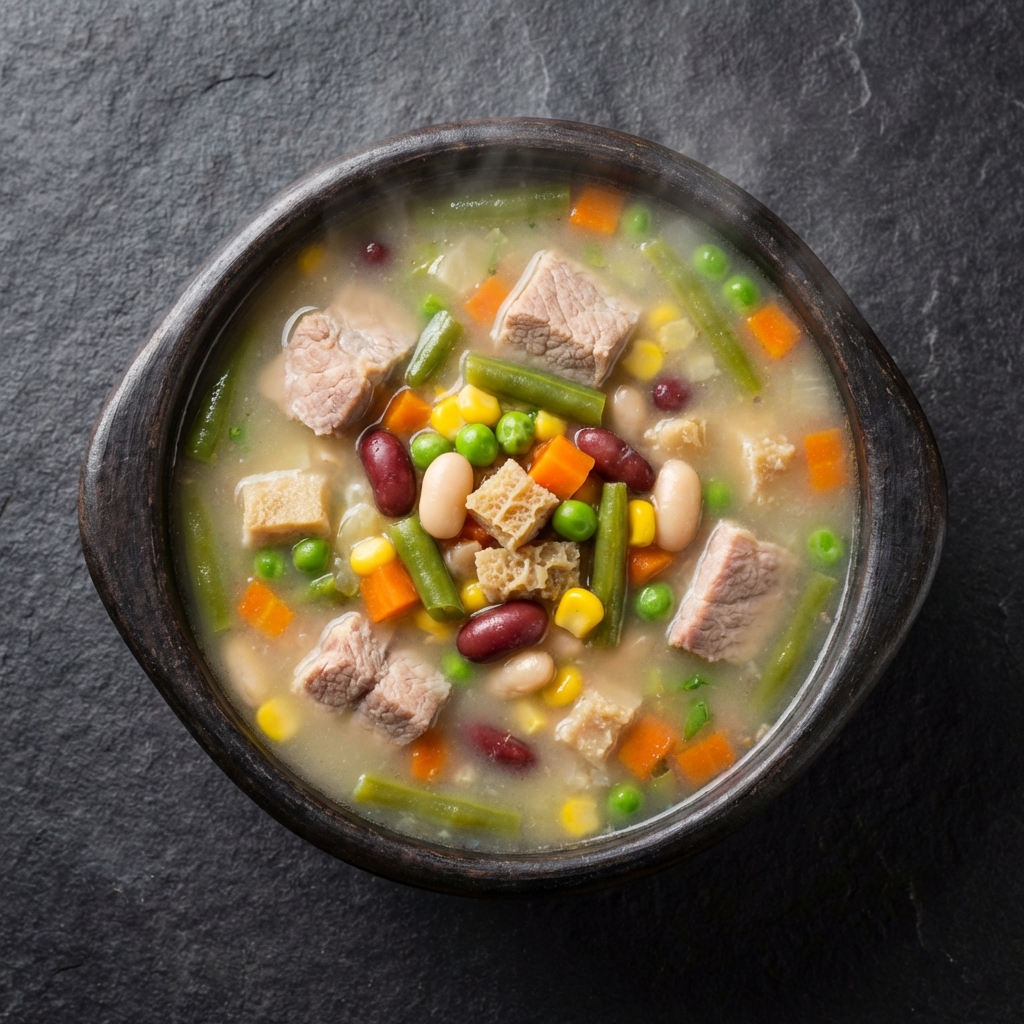 El mute santandereano es una obra maestra de la cocina colombiana: una sopa que combina granos, carne y verduras en un plato nutricionalmente completo. Con 520 calorias, 28 g de proteina, 10 g de fibra y sin frituras, es un almuerzo que alimenta de verdad.