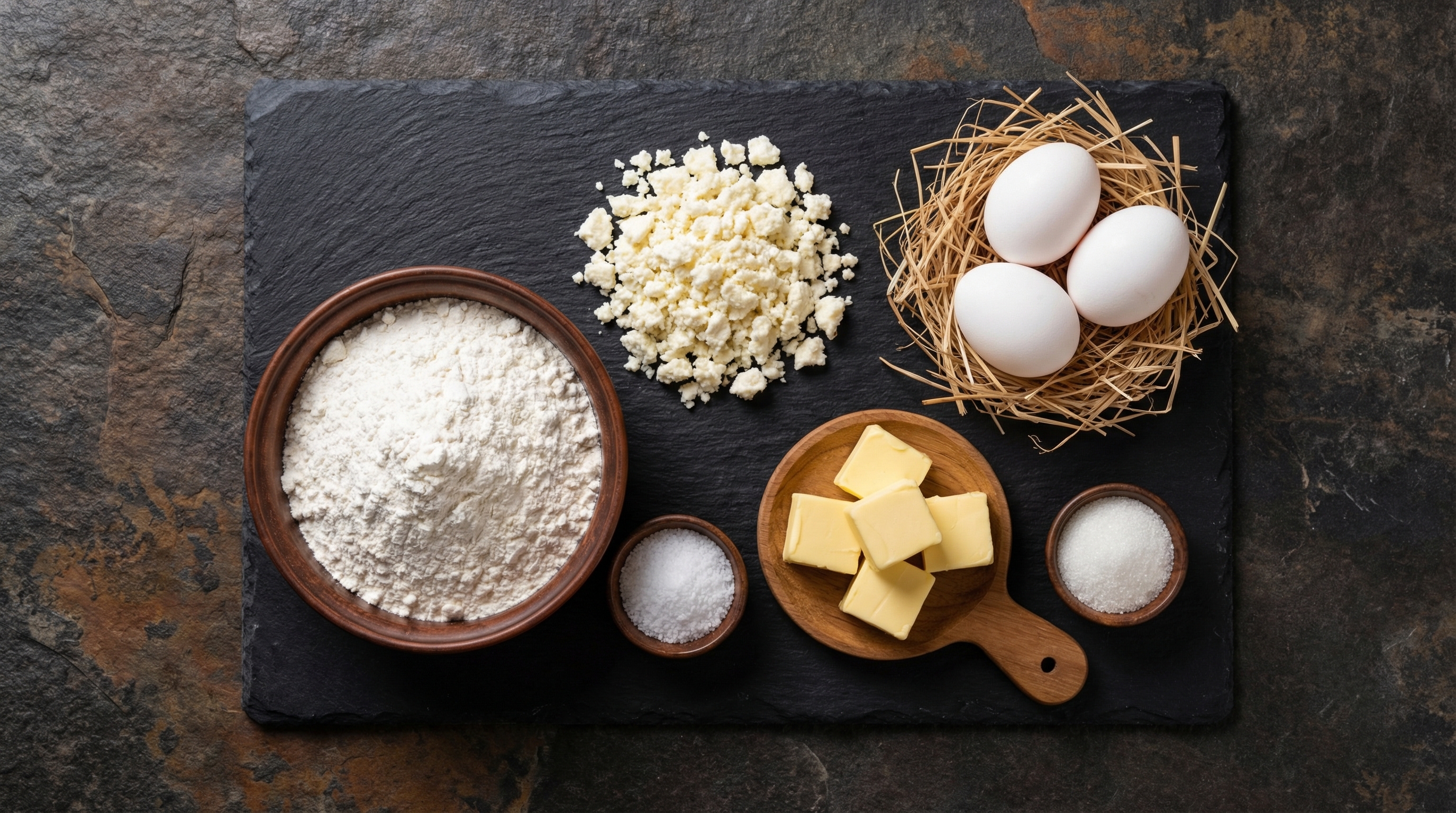 Ingredientes para preparar pandeyucas colombianos caseros.